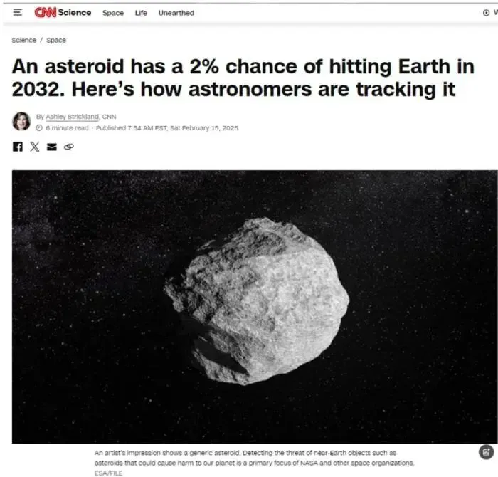小行星“2024 YR4” 图片来源:美国有线电视新闻网